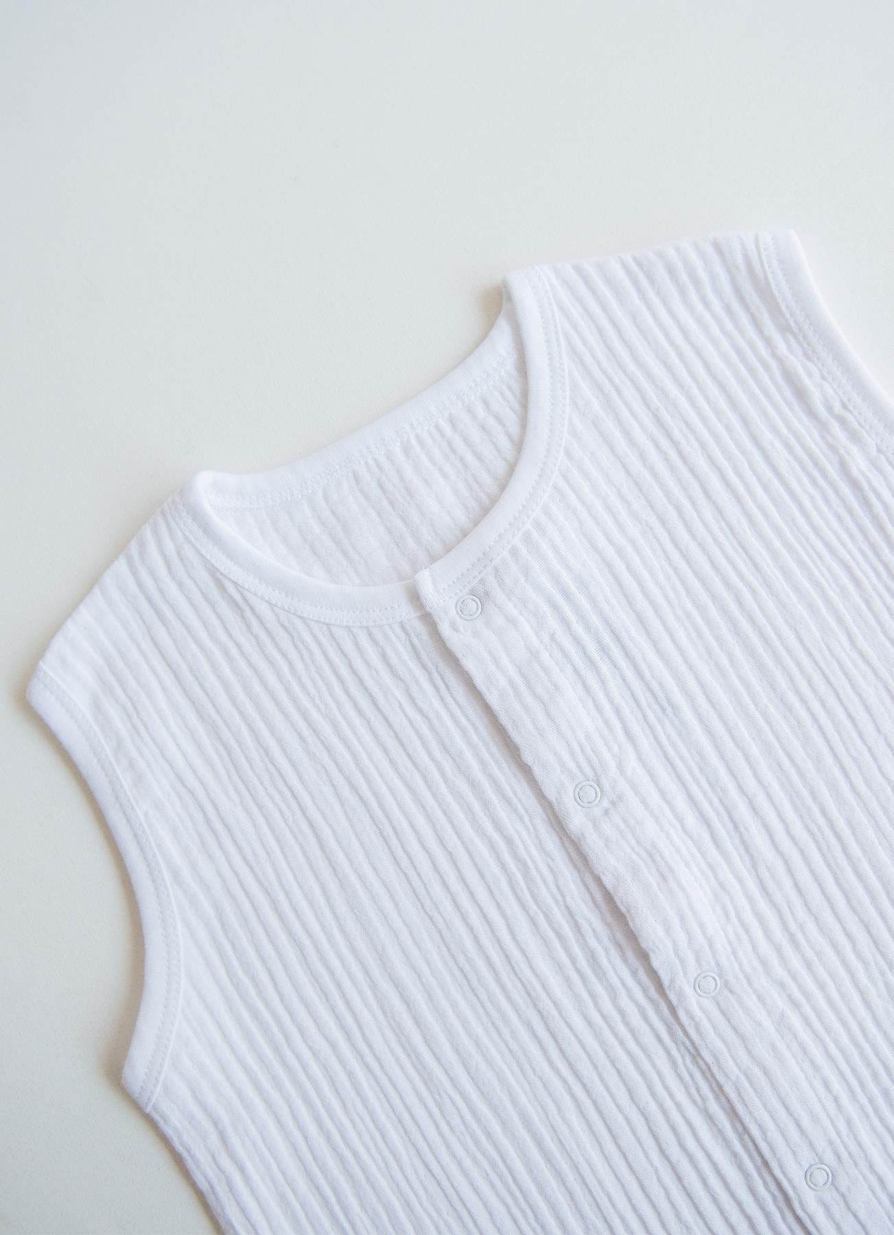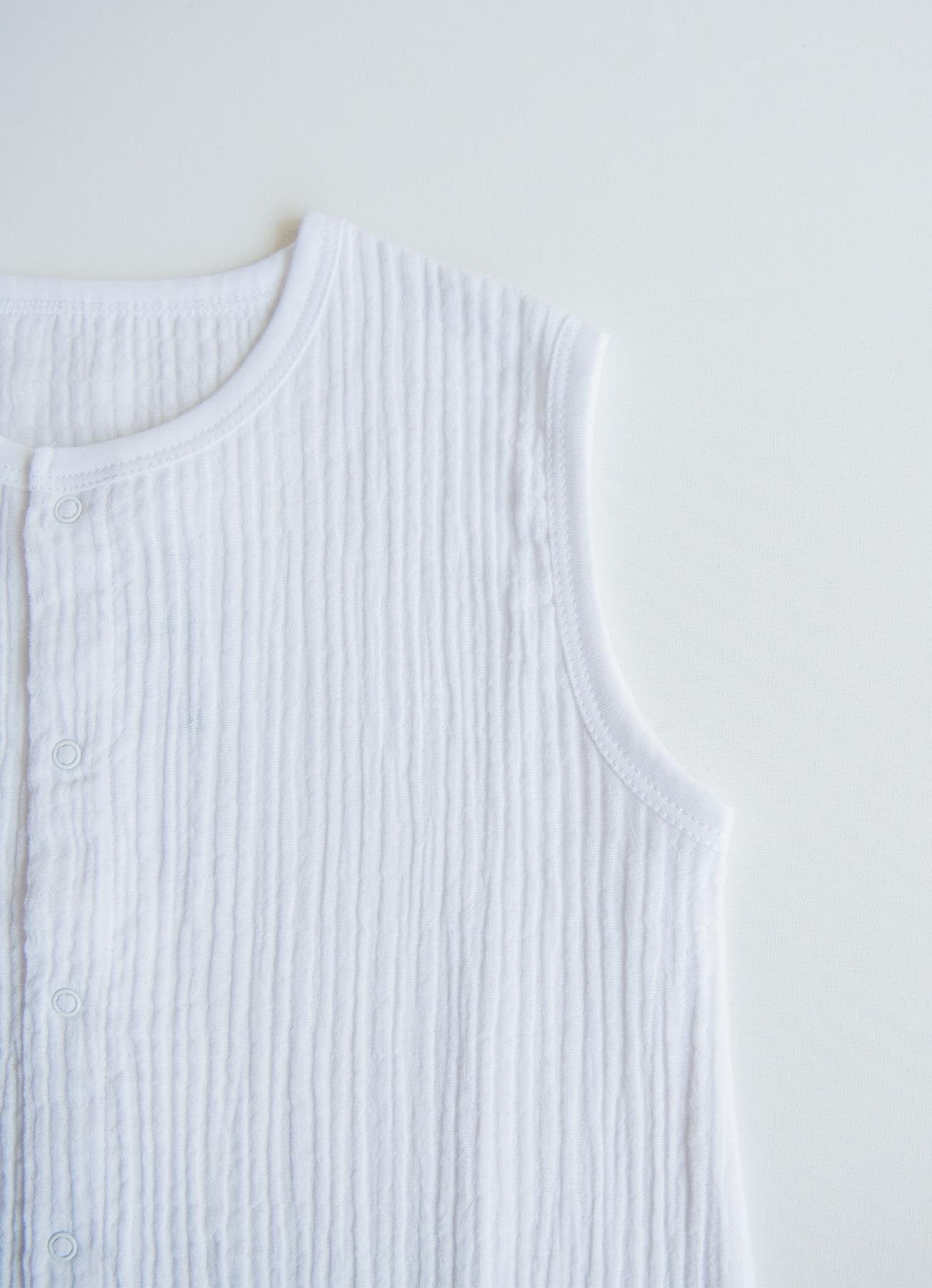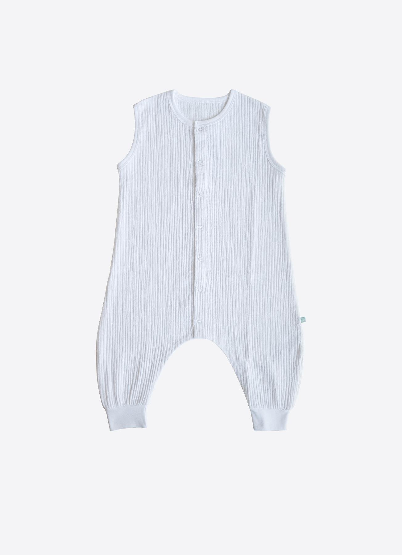 Denne kortermede soveposen er laget av 100 % bomullsmuslinstoff, og gir ideell komfort for babyen din om våren og sommeren takket være den lette og pustende strukturen. Den myke teksturen gjør den egnet for sensitiv hud. På kjøligere høstdager kan den brukes med en langermet body under. Den avslappede passformen gir bevegelsesfrihet.
