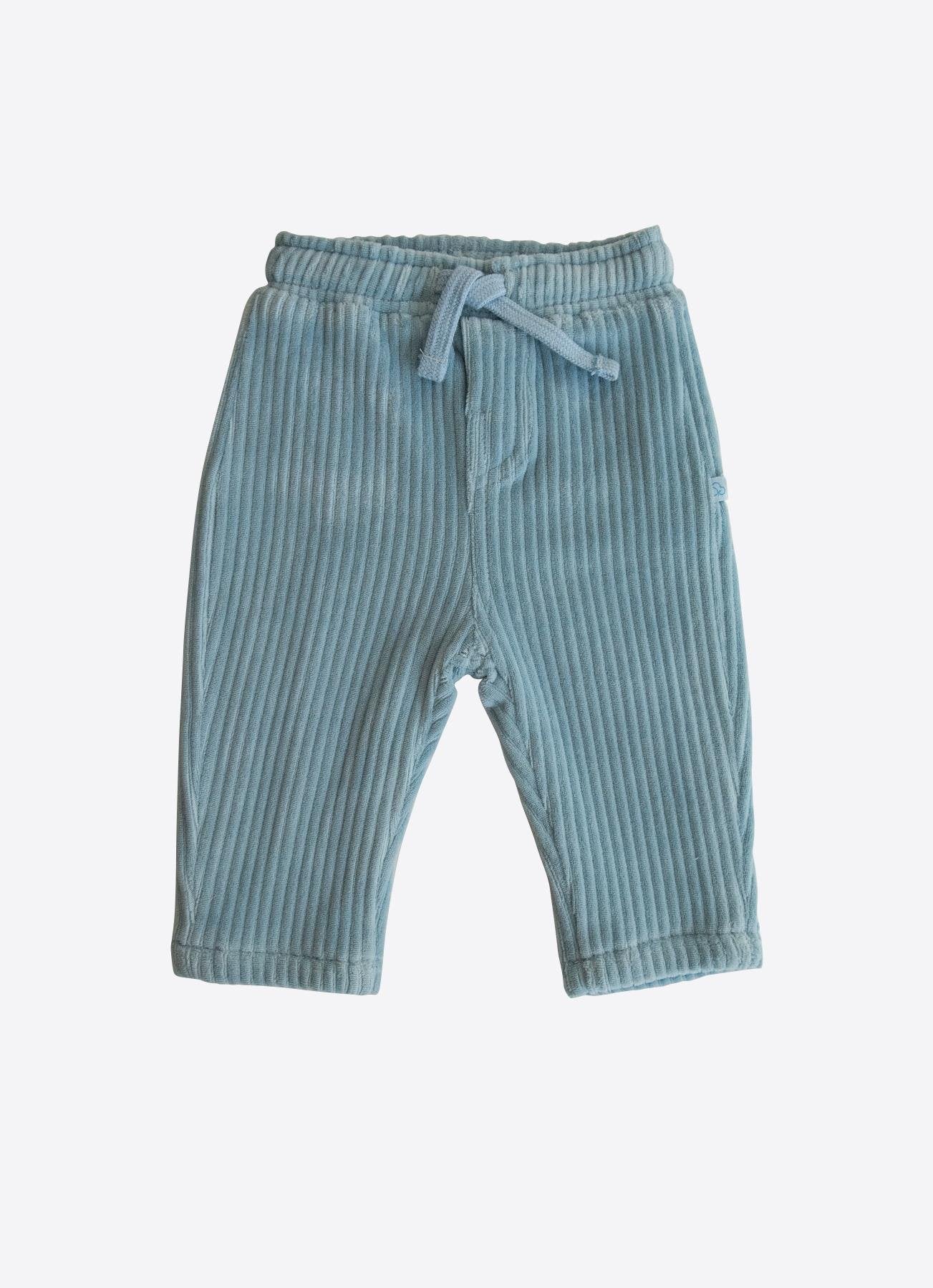 De økologiske Simon Blue-buksene er komfortable og stilige plagg som er nøye designet for babyens sensitive hud. Disse buksene er fôret med 100 % bomull og er skånsomme mot babyens hud takket være den supermyke teksturen. Ytterstoffet er laget av en blanding av 75 % bomull, 20 % polyester og 5 % elastan , noe som gir både fleksibilitet og holdbarhet.