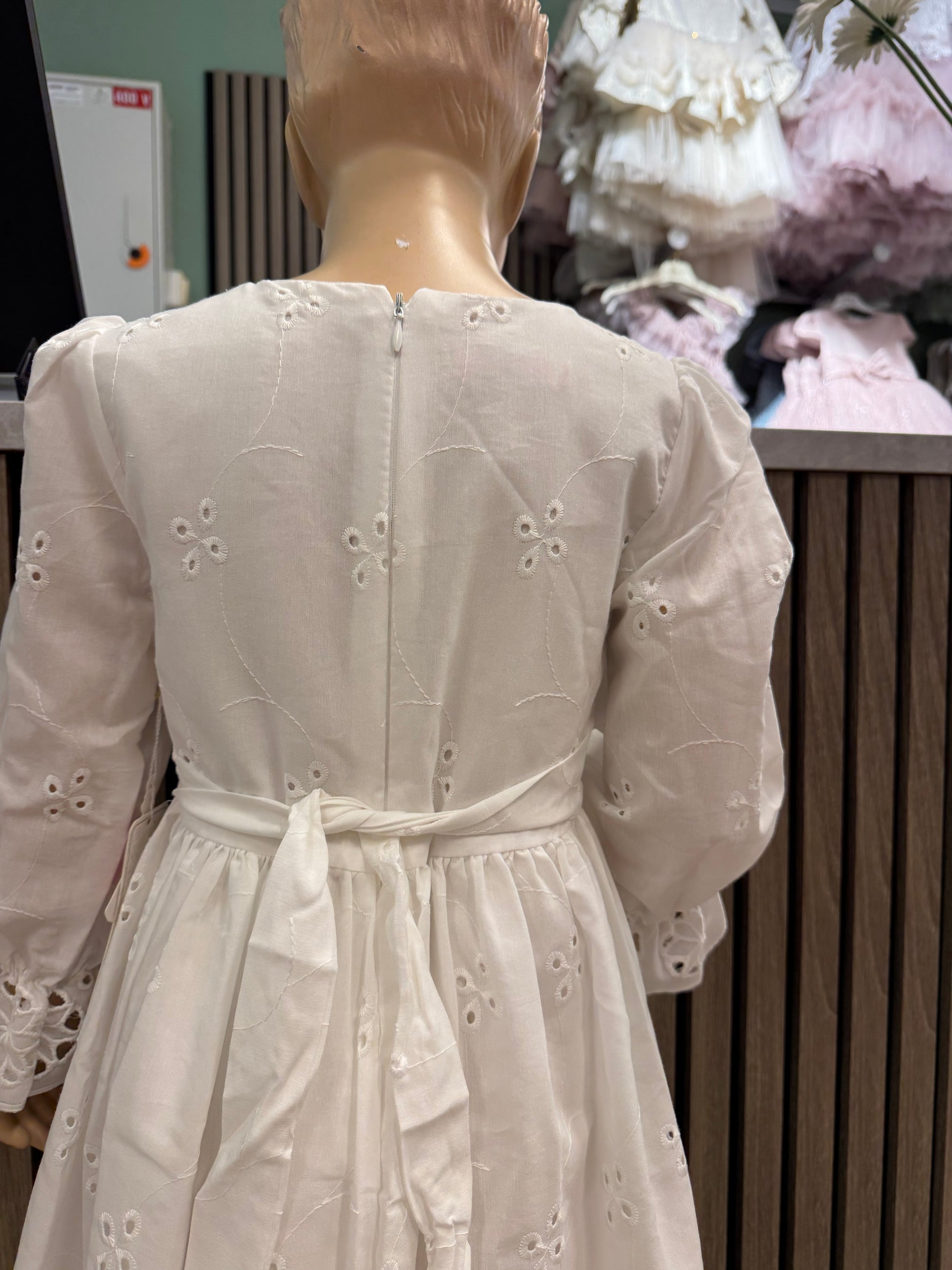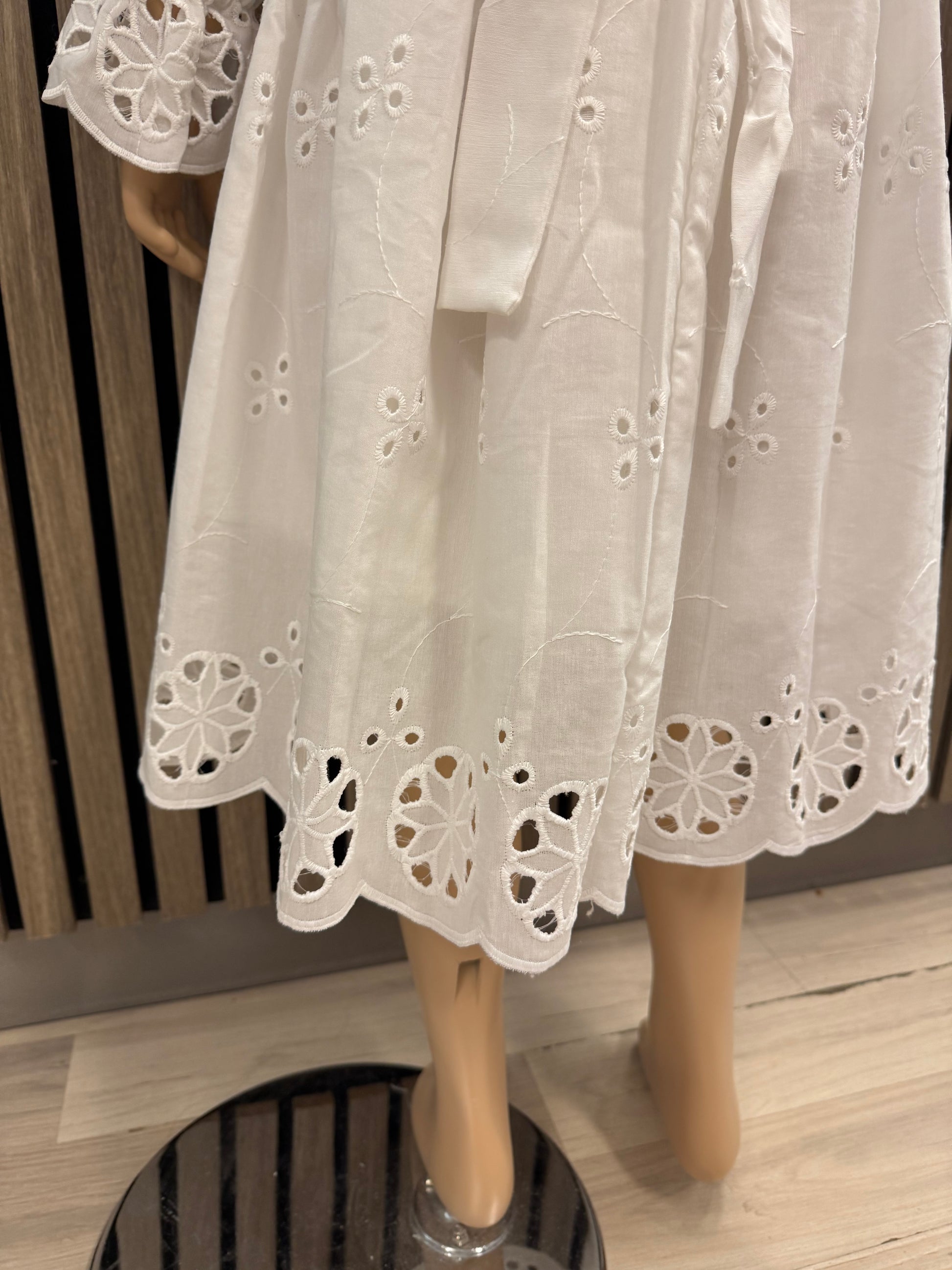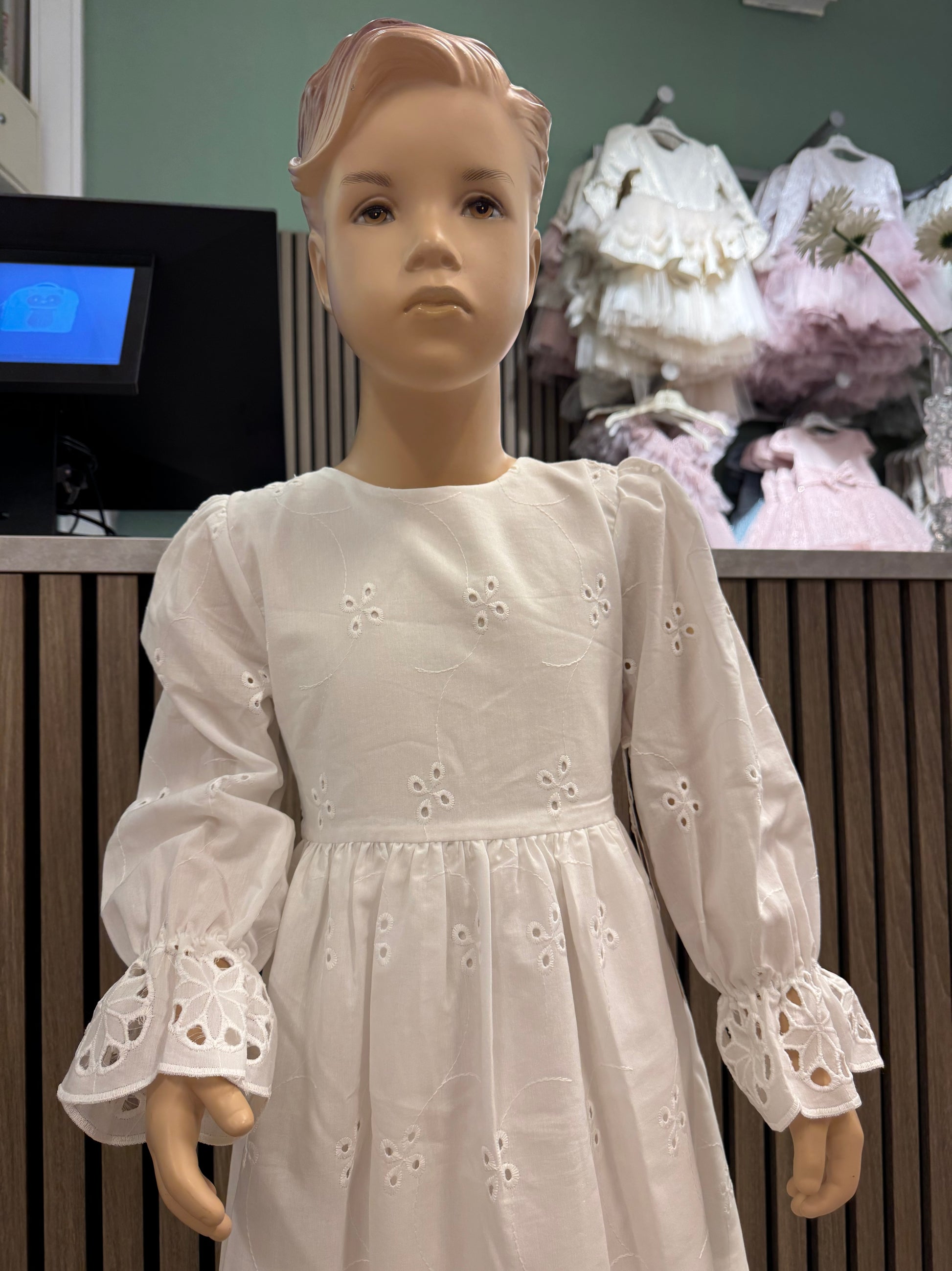 En nydelig hvit kjole Kjolen har lange ermer med delikate detaljer – perfekt for spesielle anledninger eller når det lille ekstra trengs i hverdagen.